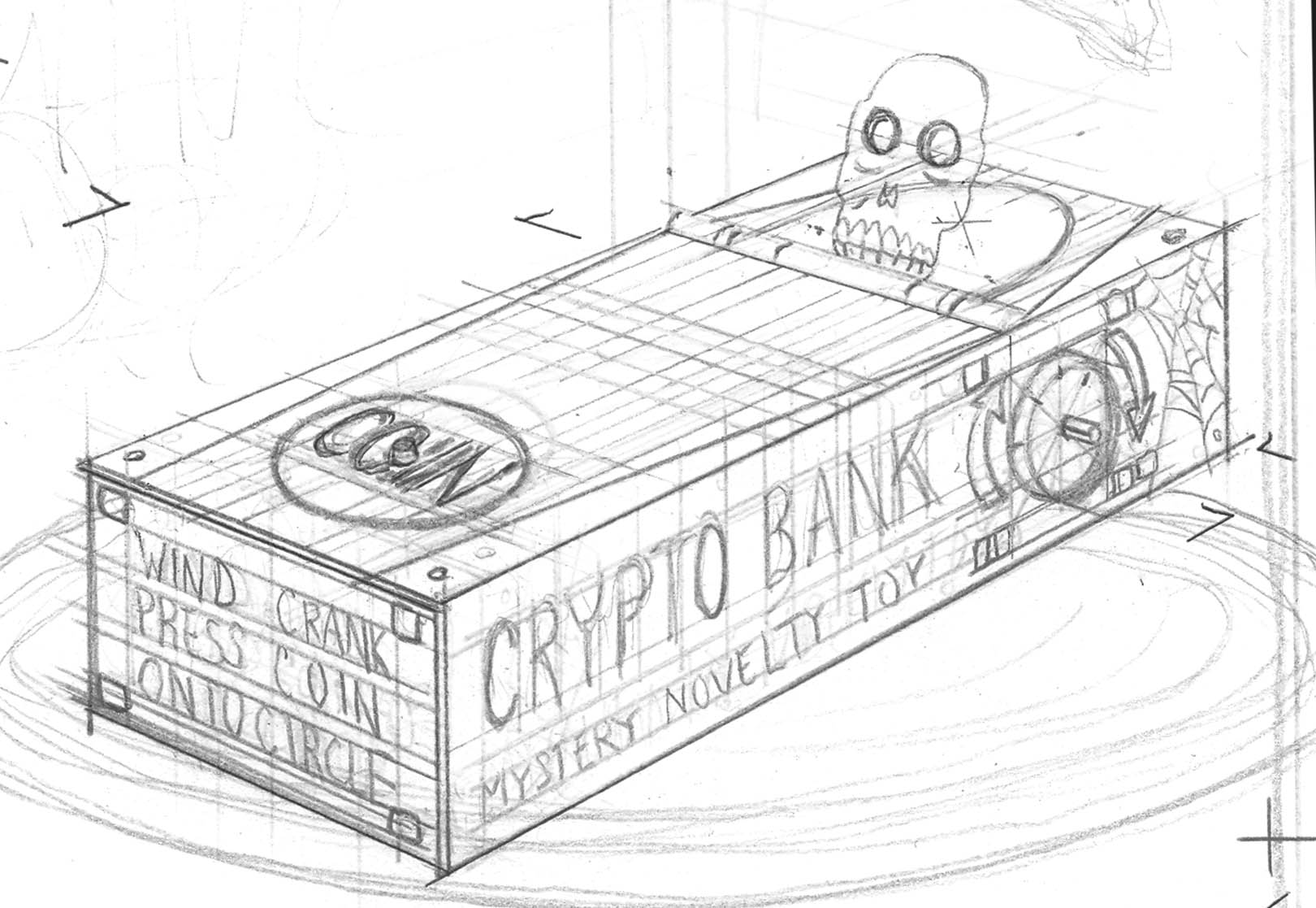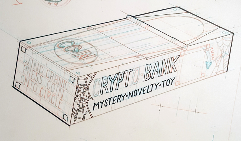 This is a piece where the concept was straight forward and fun, and I could try out some stuff...test my abilities a bit in this new NFTart medium. Which, as always, means overthinking something that should be simple. The core idea is one of these novelty banks.